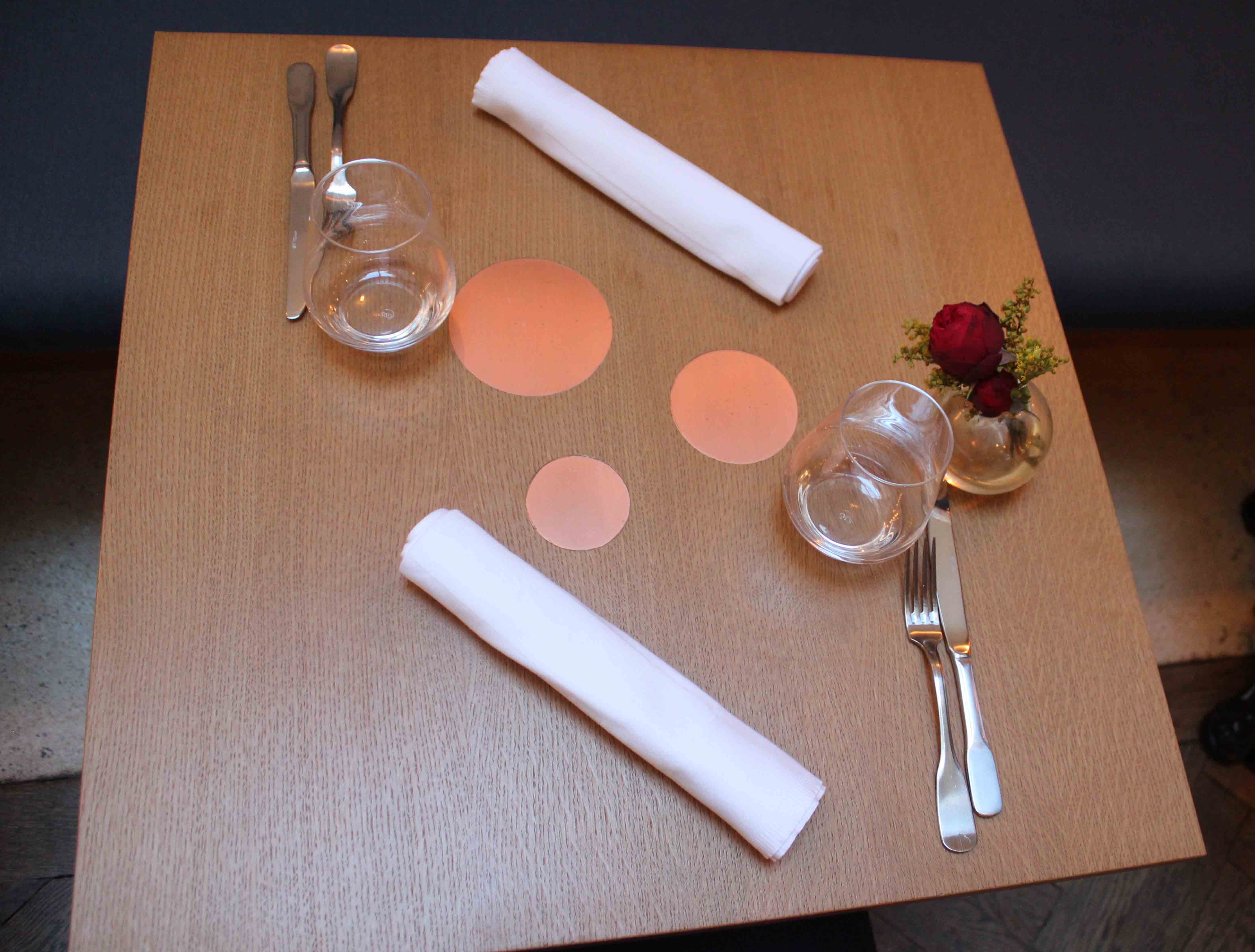 As I’m sure I’ve mentioned several times already, my pet peeve is little flower pots on tables – I just find them naff and redundant. However, the ones at Porte 12 somehow didn’t offend me – perhaps it’s because it is in such a pared back space.