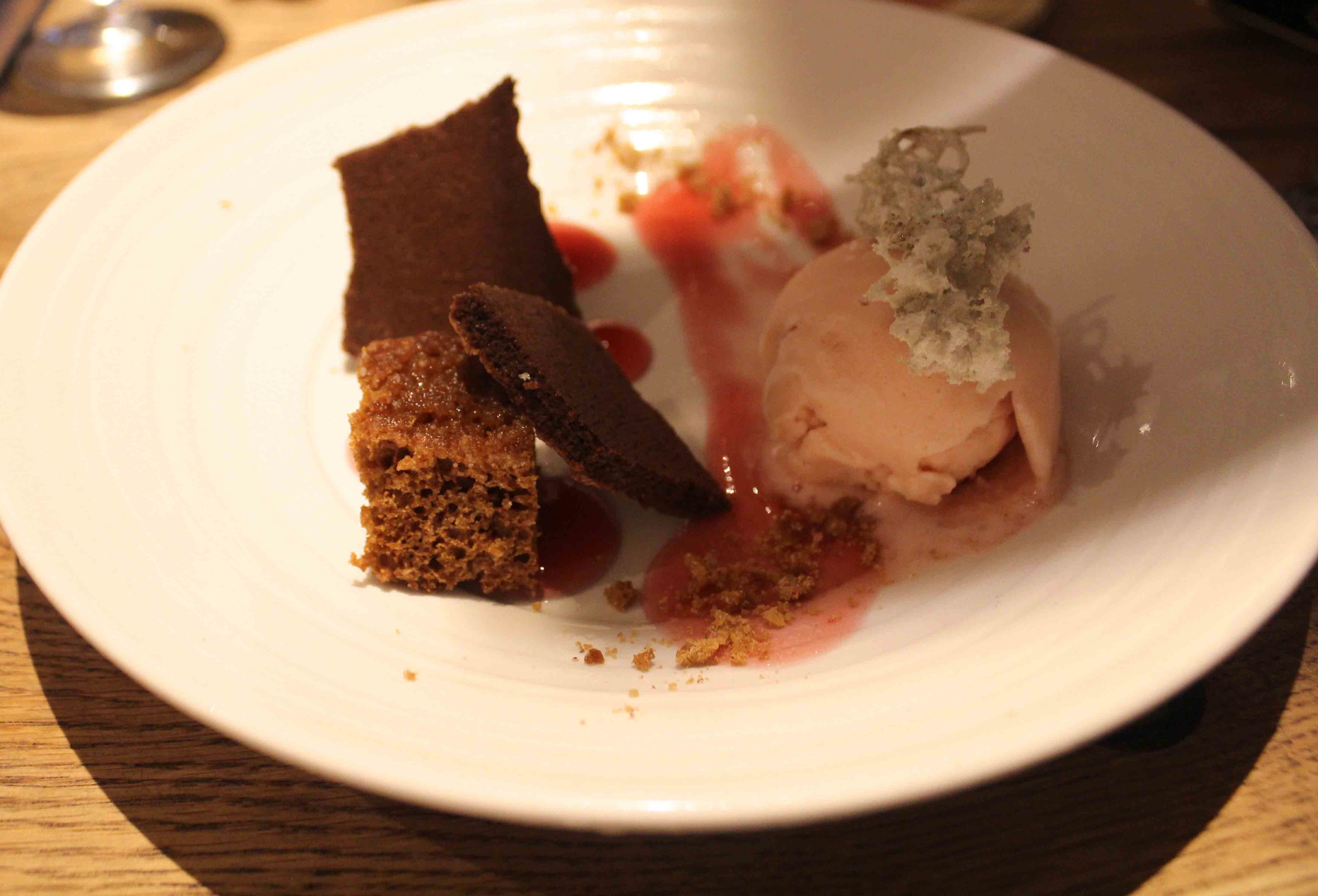 I really was gunning for the jersualem artichoke ice cream with chocolate crumb and wood sorrel. Alas, they had run out. So, I went with the maple syrup pudding, preserved plum, rum and buttermilk. For me, the maple sponge was a little on the dry side. The crunch was absolutely scrummy though (it tasted a little like frozen candy floss) and the sorbet was rather good too; couldn’t really taste the rum though which was a shame.