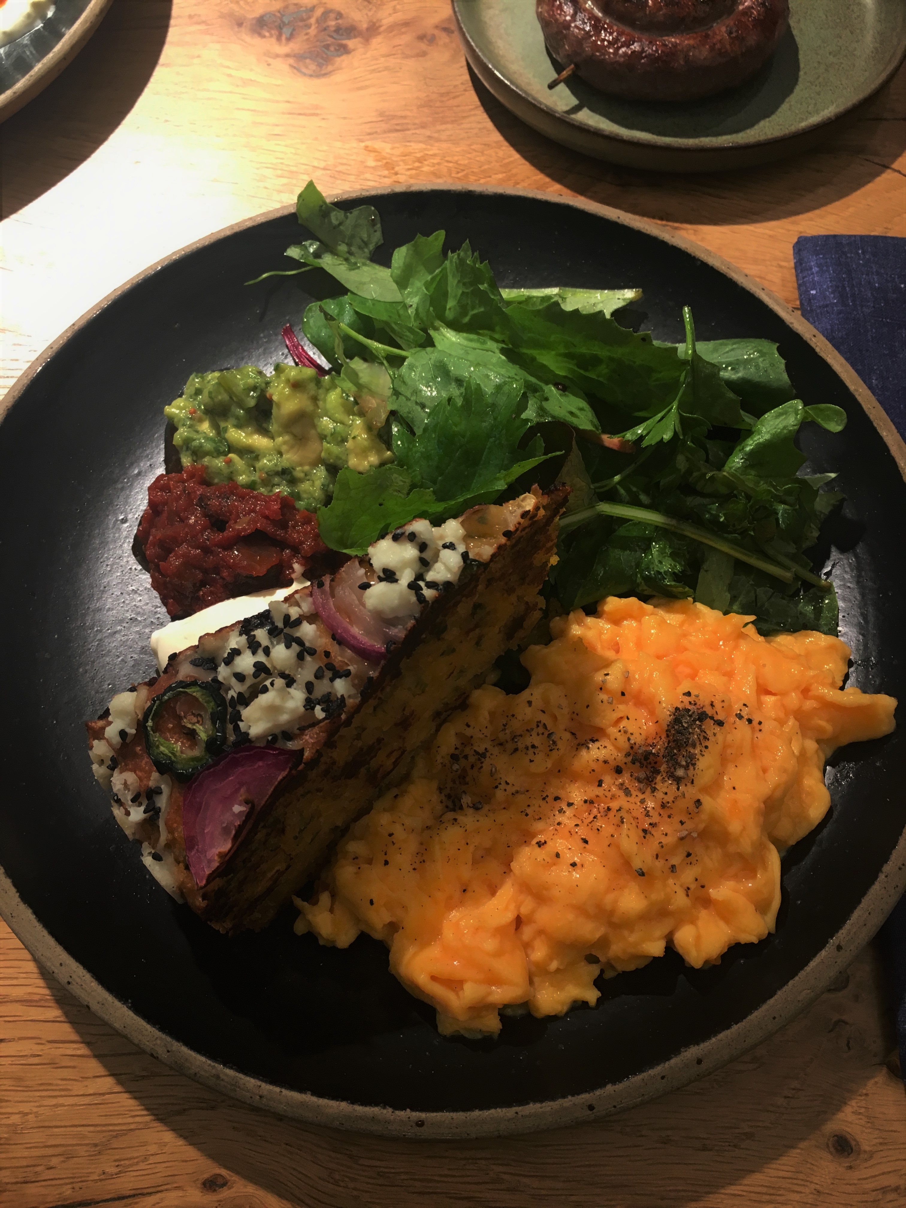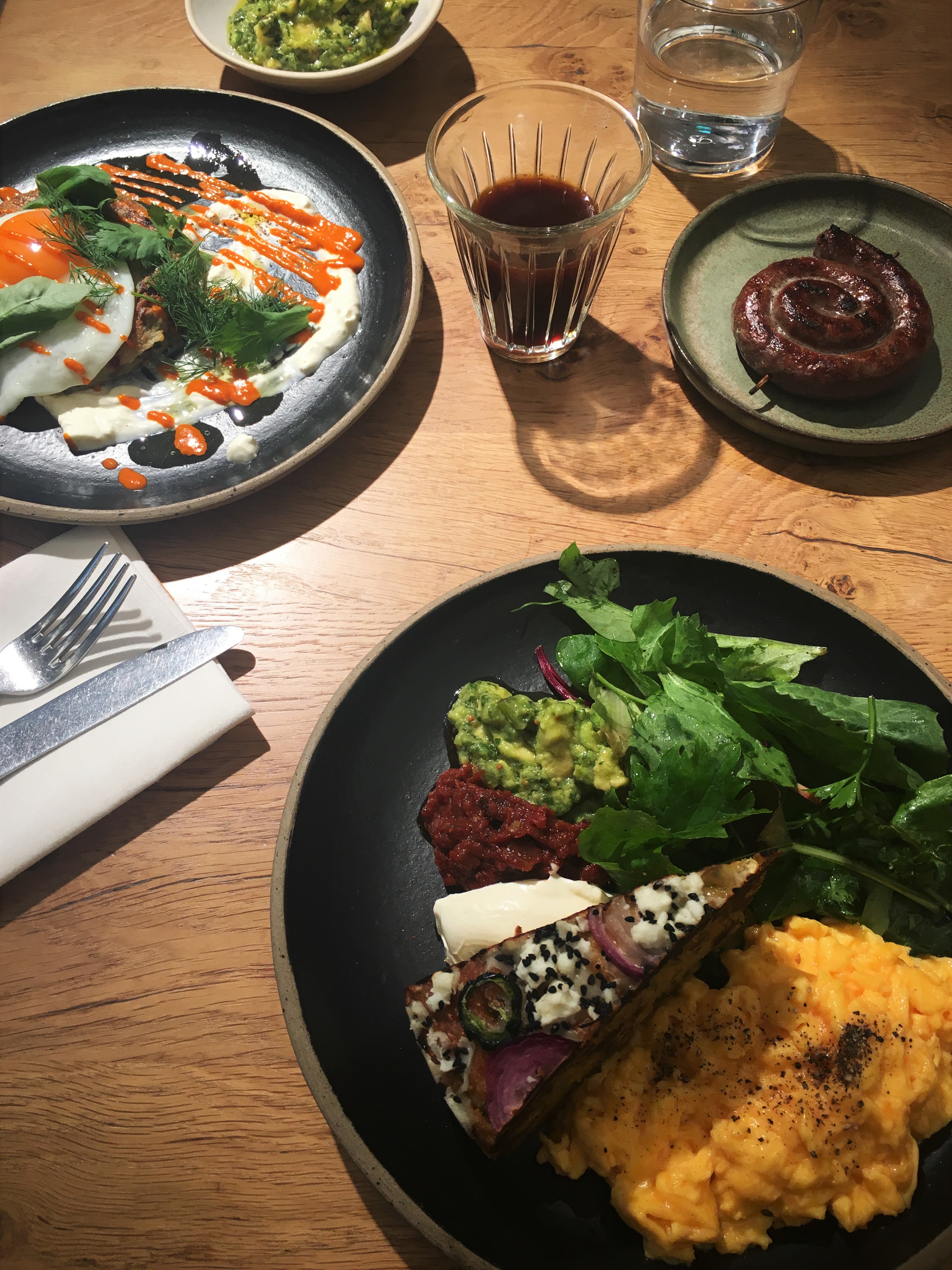 I literally couldn’t fault it. I went for the jalapeño cornbread with scrambled eggs, salad, tomato paste, smashed avo and a side serving of beef sausage – fresh produce, vibrant colours but crucially divine to devour. Grapefruit juice was my drink of choice and went down a treat.