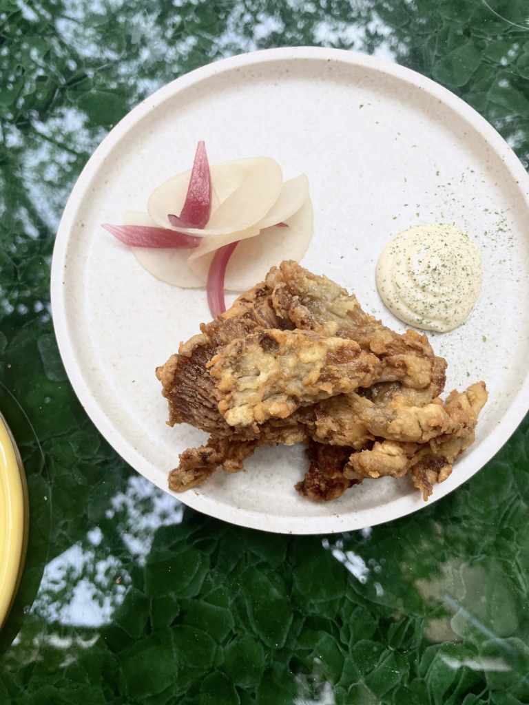 Fried Grey Oyster Mushroom, Smoked Emulsion & House Pickles. I love me some quality fried chicken and I’m not gonna lie here and say I’ll give that up BUT this fried mushrooms, ooomph – Native smashed this.