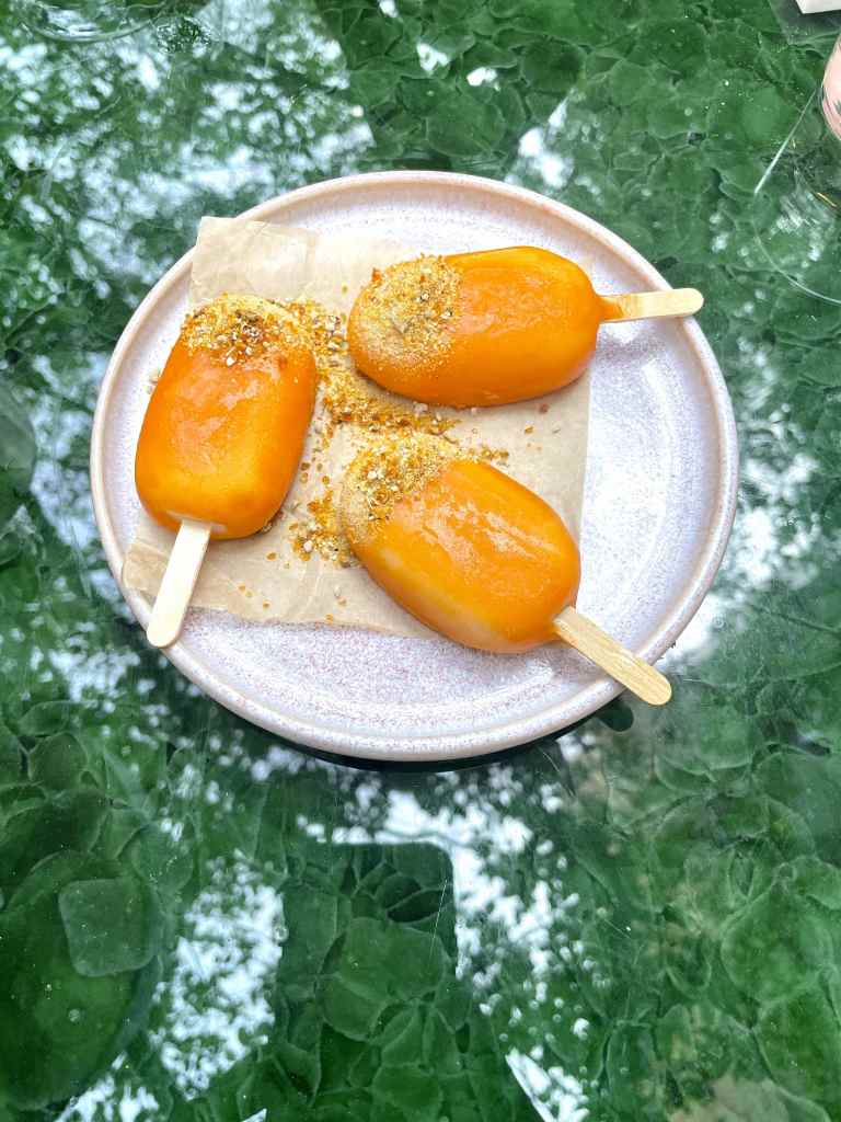 ‘Sea-Lero’ – Sea Buckthorn Ice Lolly w. Oat Milk Sorbet & Alexander Seed. A great way to round things off. Like a pleasant summer’s day in your mouth.